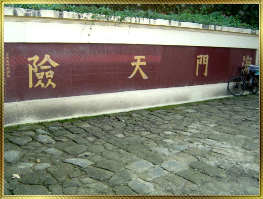這群人,忍受著原始溫帶叢林蚊蚋的可怕攻擊叮咬,終於在中午時分到達了先前所估計的地點,他們找到了雕有『海門天險』的半殘門碑,我收藏著一張四十六年前的黑白照片留影為證,一群人興奮的站在一堆隱約看的出的傾倒的人工雕琢出的方型大石塊前,整個古砲台區域上面被雜草樹木湮沒了,唯一仍舊屹立可見的是風化後殘留的門碑。
