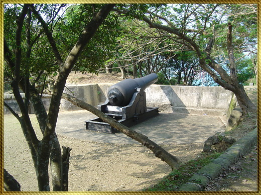 基隆港的周圍,環繞著山丘,腹地不大的基隆,多為山丘起伏地型,因為多雨的關係,而林相茂盛,若非親自走港邊的山丘上面,還真看不出隱在樹林裡密密麻麻的軍事堡壘和砲台,基隆港四周圍砲台一座接一座,每一座都是以堅固的結構和重石所砌成,最古老而尚可見的一座就在基隆港的港口二沙灣的位置,它建立在清朝道光年間(A.D.1840),是為了阻擋英國海軍或倭寇所建設的重兵力砲台。
